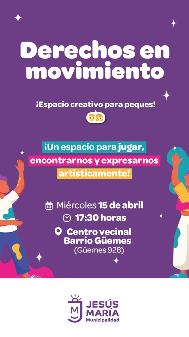 Se dictará desde las 17:30 horas en el Centro Vecinal Barrio Güemes (Güemes 928). Se trata de un espacio de talleres lúdicos y artísticos para niños y niñas, para jugar, encontrarse y expresarse de una manera didáctica.